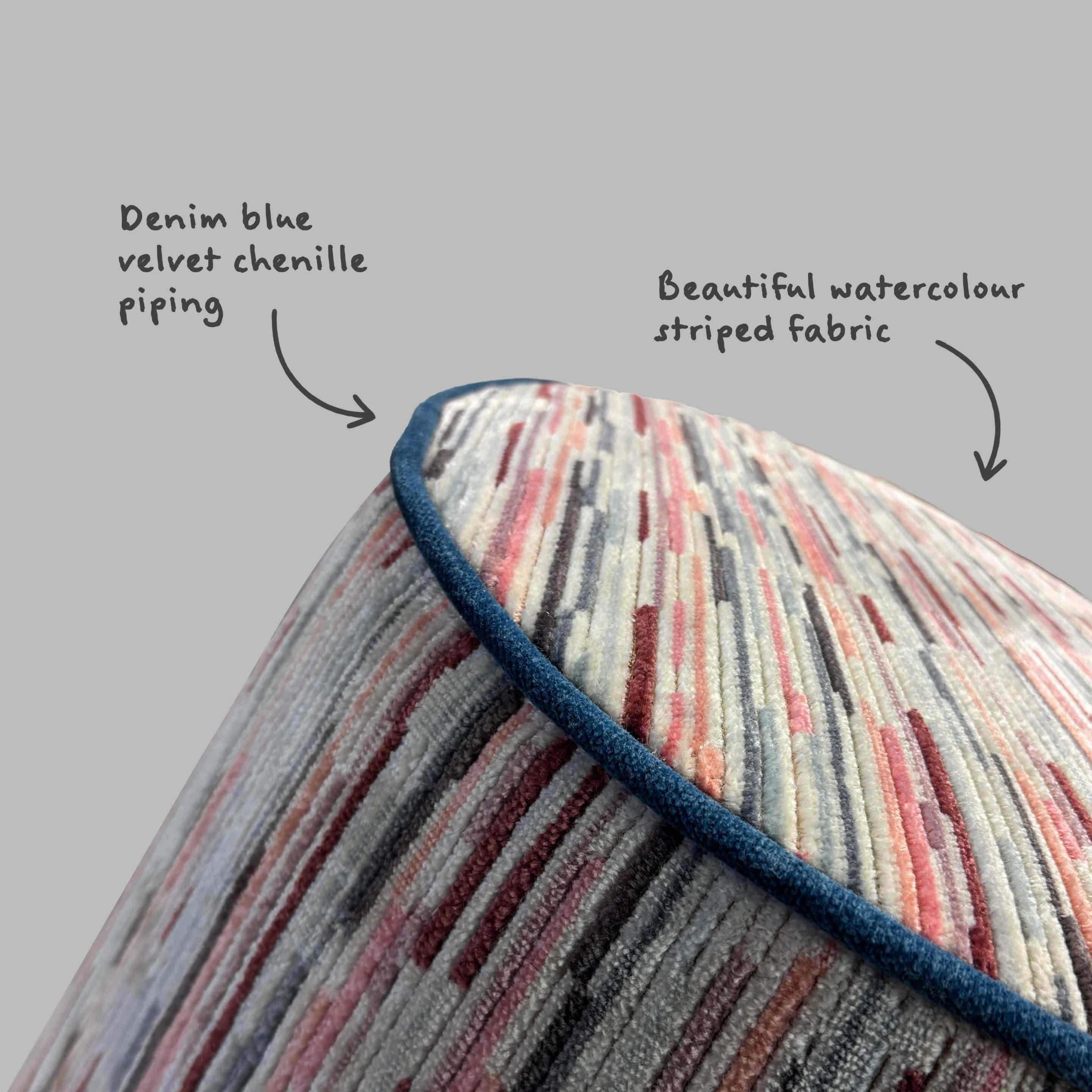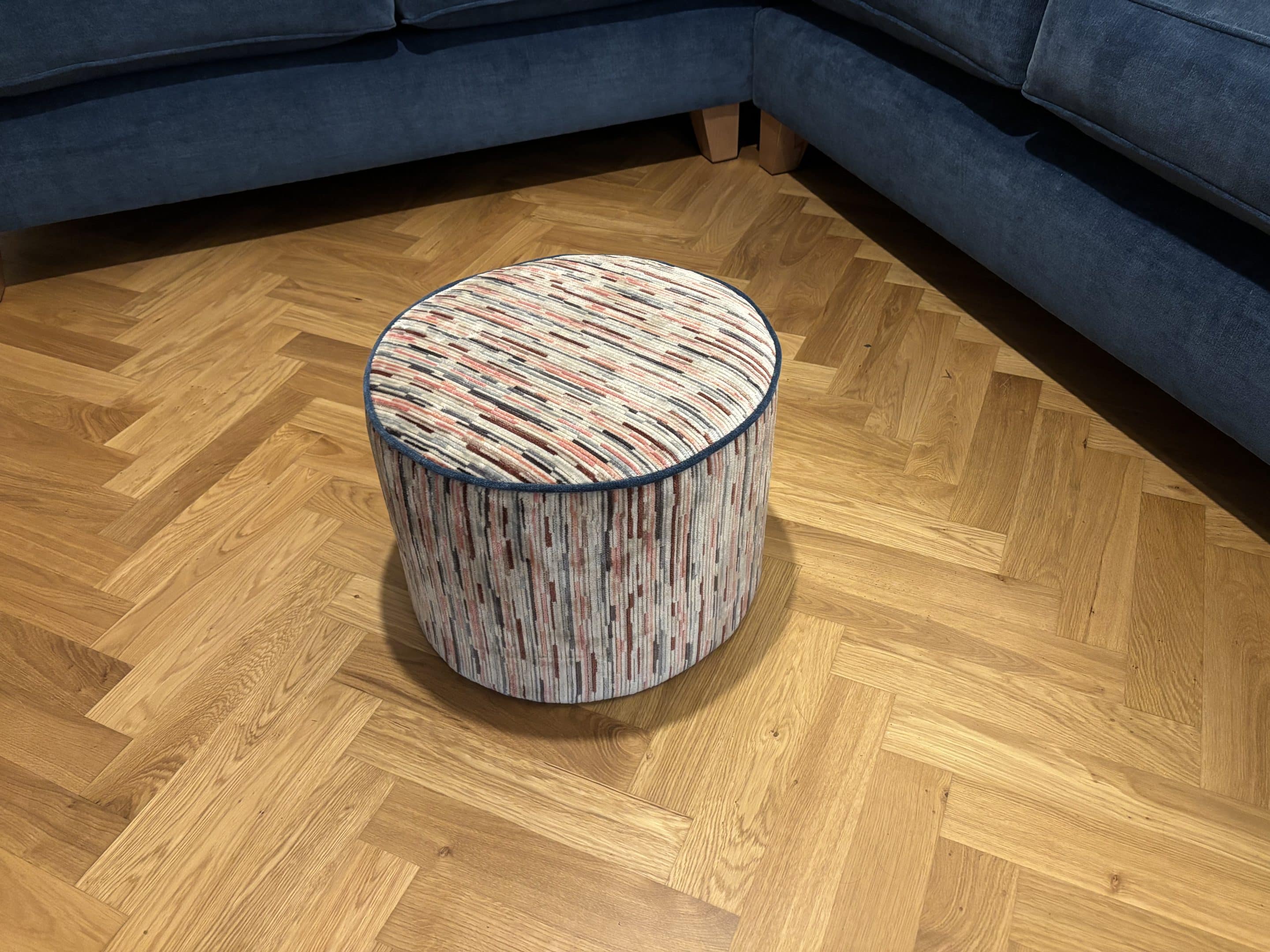 I may be small, but I pack a punch when it comes to style and usefulness. Built from strong, comfy block foam with a sturdy wooden base, I’m light on my feet and easy to scoot around. Upholstered in Soft vertical strokes of blush, clay, inky blue and warm neutrals, I bring a touch of elegance and modern texture to any room. Pop your toes on me, perch for a chinwag, or plonk me wherever you fancy – I’m up for anything.