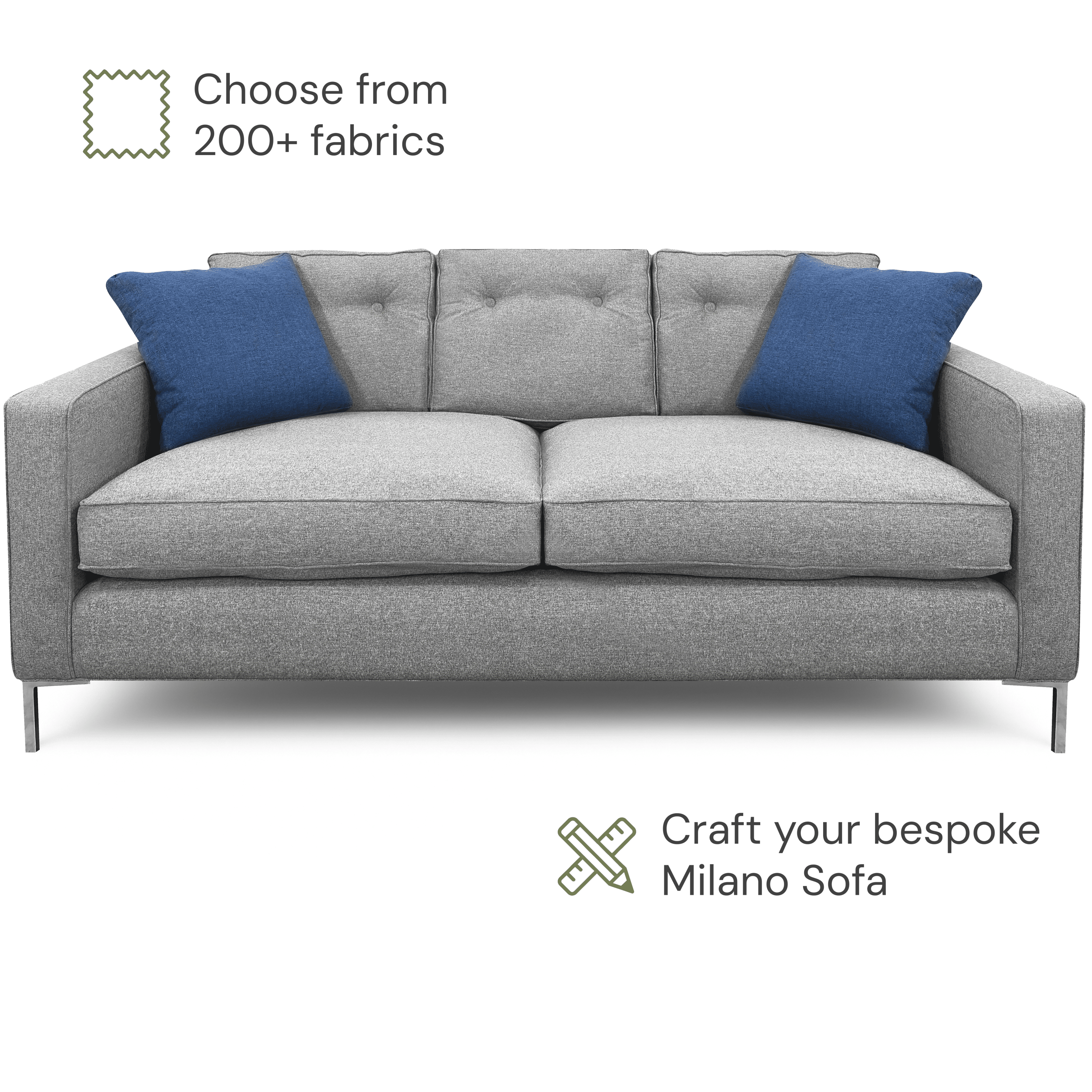 • If you’re after something totally bespoke, a different size, added piping, different feet styles, or something else entirely, just pop us a message or give us a ring. Our clever team love bringing custom creations to life, even beyond what’s listed on the website. Go on, dream big.